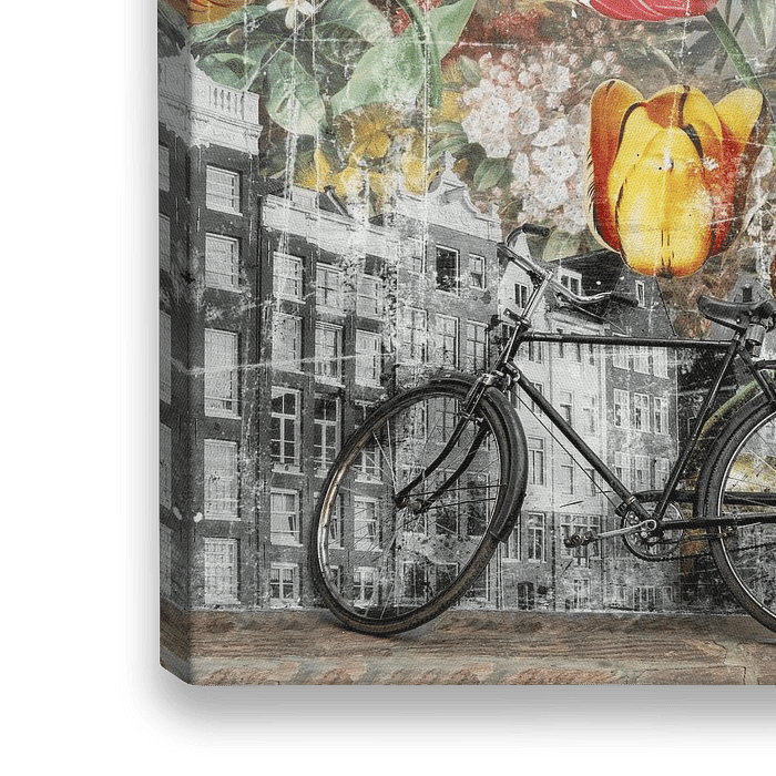 Tulpen, grachtenpanden in Amsterdam, een fiets... Hollandser dan dit wordt het niet.