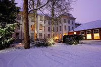 Grand Hotel Karel V vanaf de binnenplaats in de winter. Het in 1999 geopende hotel is het eerste vijfsterrenhotel van Utrecht. Het gebouwencomplex stamt uit de 14e eeuw en huisvestte gedurende ongeveer 450 jaar de Landcommanderij van de Ridderlijke Duitse Orde.