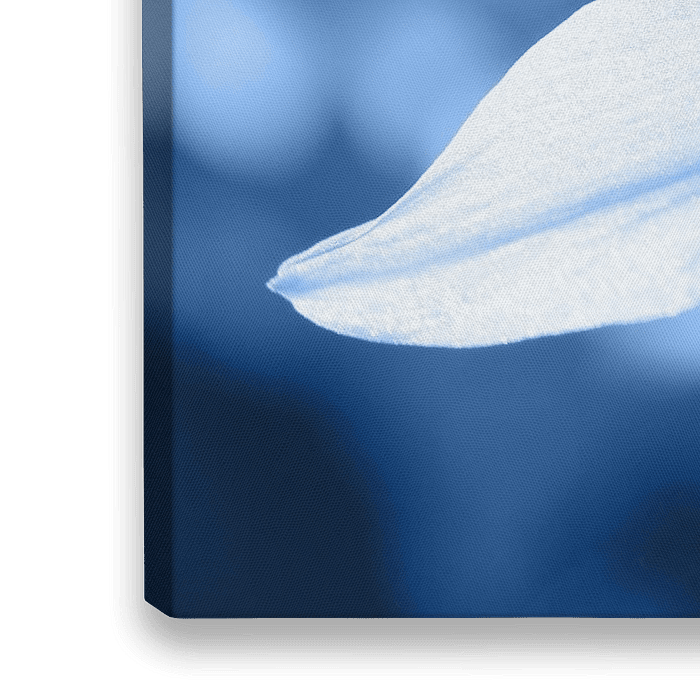 Zonovergoten abstract bloemblaadje van een witte narcisbloem, in close up met indigo blauwe tinten. Mooie lentebloemen , natuur met een verschil.
