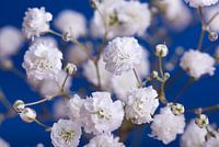 Koop dit bloemen kunstwerk Blauw met witte bloemetjes van Marjolijn van den Berg op canvas, aluminium dibond, (ingelijste) fotoprint, behang en ArtFrame, op maat geprint in Fine-Art kwaliteit.