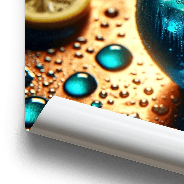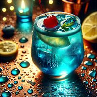 De afbeelding "Blue Lagoon" gemaakt met DALL-E, geeft de essentie weer van een van de meest iconische cocktails van de moderne barcultuur, omgeven door een bijna surrealistische aura van digitale kunst. De afbeelding toont de kenmerkende ijsblauwe kleur van de cocktail, die tot leven wordt gebracht door de presentatie in een rond glas…