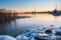 Blick über die Warnow auf Rostock im Winter van Rico Ködder