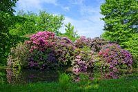 Prachtige oude rododendrons in Breidings Garten, een oud park in Soltau. Heidekreis, Lüneburger Heide, Nedersaksen, Duitsland. Voorjaar 2016.