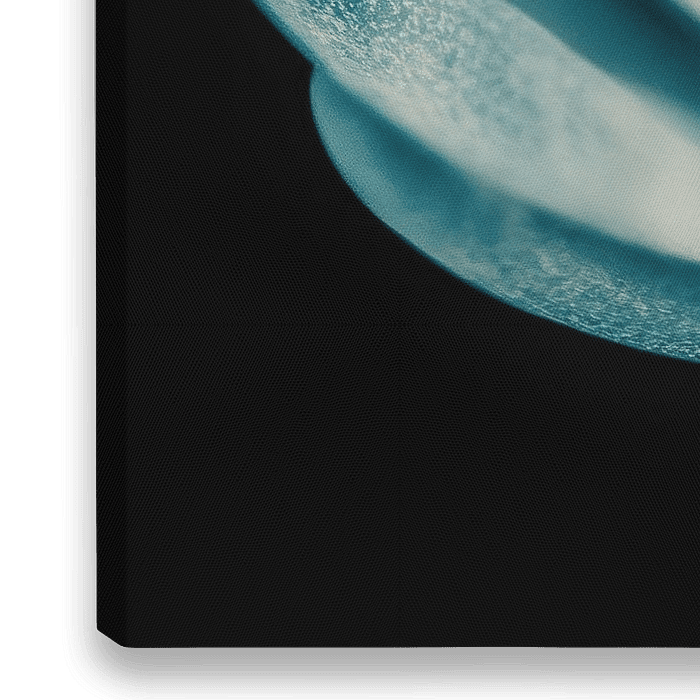 Een intrigerende weergave van een bloem in blauw, waarbij de subtiele lijnen en vormen een bijna etherische uitstraling creëren. De blauwe tinten variëren van diep en intens tot licht en zacht, waardoor een fascinerend spel van licht en schaduw ontstaat. De bloem lijkt op te lichten tegen een neutrale achtergrond, wat de focus volledig…