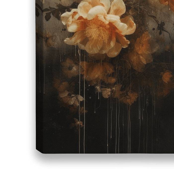 Bloemen tegen een abstracte achtergrond in wabi-sabi stijl. Een bijzondere blikvanger voor je interieur waar je naar blijft kijken. Kies zelf het formaat en materiaal bij dit werk.