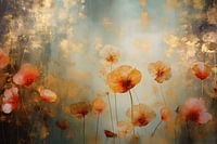 Bloemenveld met klaprozen met een gouden accent. Een modern chic werk en een echte blikvanger voor je interieur. Kies zelf het formaat en materiaal bij dit werk.
