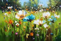 Prachtig schilderij van een bloemenweide als hoogwaardige kunstprint.