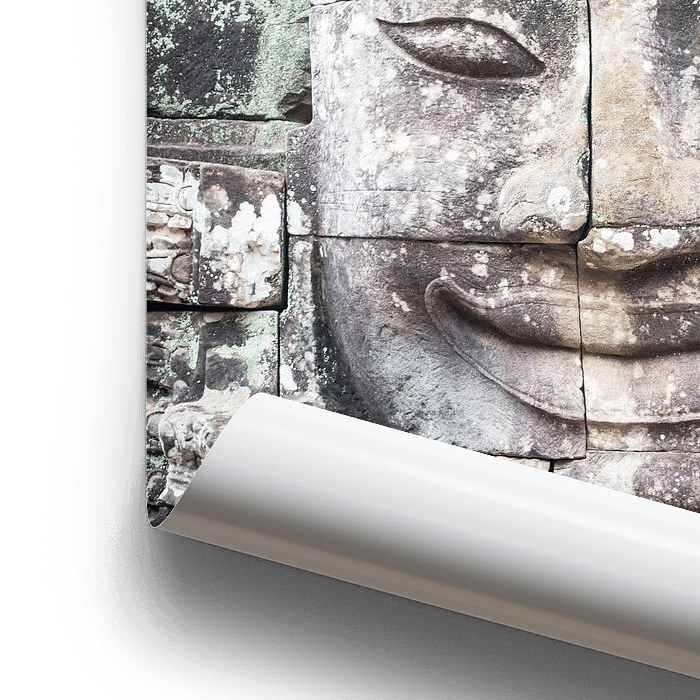 Koop de foto Boeddha in steen, Cambodja van Rietje Bulthuis op canvas, aluminium dibond, (ingelijste) fotoprint, behang en ArtFrame, op maat geprint in Fine-Art kwaliteit.
