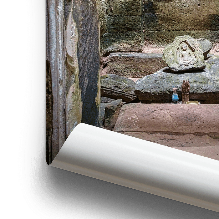 Koop de foto Boeddha reliëf in liggende steen in de Ta Prom tempel, Cambodja van Rietje Bulthuis op canvas, aluminium dibond, (ingelijste) fotoprint, behang en ArtFrame, op maat geprint in Fine-Art kwaliteit.