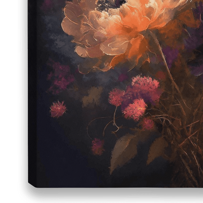 Dit prachtige schilderij, getiteld "Boeket van de Zon", betovert de kijker met een weelderig boeket van geschilderde bloemen, badend in het warme licht van de zon. Elk detail van dit kunstwerk is met zorg weergegeven, van de verfijnde vormen van de bloemblaadjes tot de levendige kleuren die tot leven…