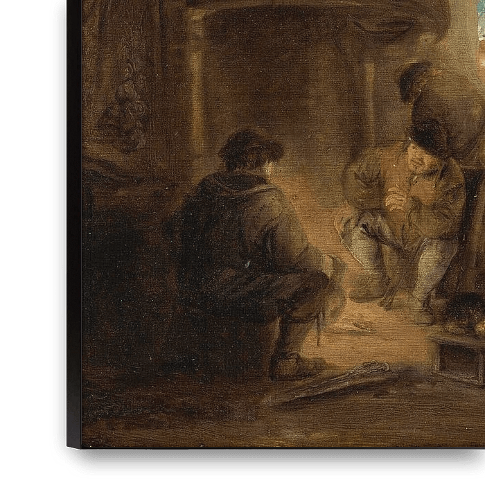 Koop Boeren drinken en spelen backgammon, Adriaen van Ostade als reproductie op canvas, aluminium dibond, (ingelijste) fotoprint, behang en ArtFrame, op maat geprint in Fine-Art kwaliteit.