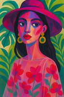 In dit expressieve digitale portret straalt een bohemian vrouw te midden van levendige kleuren, tropische bladeren en speelse bloemmotieven. Het werk is geïnspireerd op zomerse vrijheid, zelfexpressie en de kracht van vrouwelijkheid, waarbij abstracte vormen en felle tinten samenkomen tot een uniek geheel. Deze combinatie van…