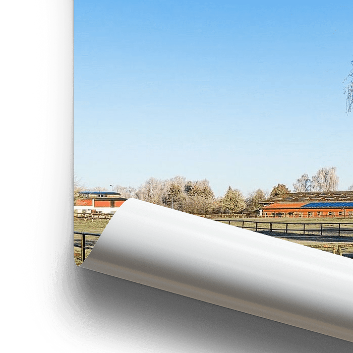 Koop de foto Bomen met rijp en paddock in de winter in Biestow van Rico Ködder op canvas, aluminium dibond, (ingelijste) fotoprint, behang en ArtFrame, op maat geprint in Fine-Art kwaliteit.