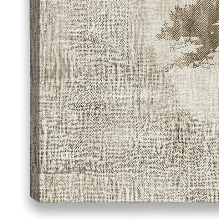 Bomen schilderij | The Solitude of Ancient Growth - Dit bomen schilderij toont een majestueuze, solitaire boom die centraal staat tegen een rustige, textuurrijke achtergrond die het uiterlijk van verweerd pergament imiteert. De boom, met zijn grillige en sierlijk gebogen takken, is rijkelijk bedekt met gebladerte, waardoor een…