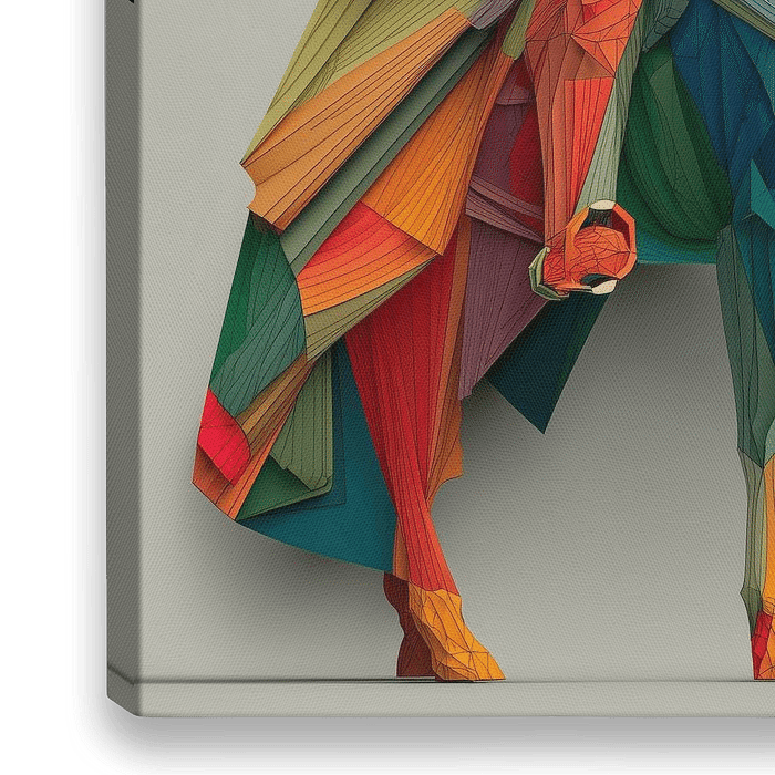 Een fascinerende centaur boogschutter wordt gepresenteerd in deze moderne, abstracte interpretatie van het sterrenbeeld Boogschutter. De hele figuur bestaat uit talloze driehoekige en veelhoekige vormen die als een complex mozaïek aan elkaar zijn bevestigd. Het kleurenschema is uitzonderlijk gevarieerd, van helder rood, oranje en geel…