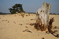 Deze boomstronk staat in het zandverstuivingsgebied de Pollen in nationaal park de hoge Veluwe. Het is een uitgestrekte zandvlakte met meerdere boomstronken en ook levende bomen