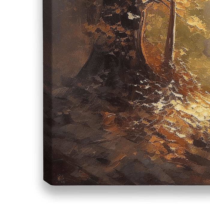 Koop dit schilderij Bospad in de herfst van ARTemberaubend als reproductie op canvas, aluminium dibond, (ingelijste) fotoprint, behang en ArtFrame, op maat geprint in Fine-Art kwaliteit.