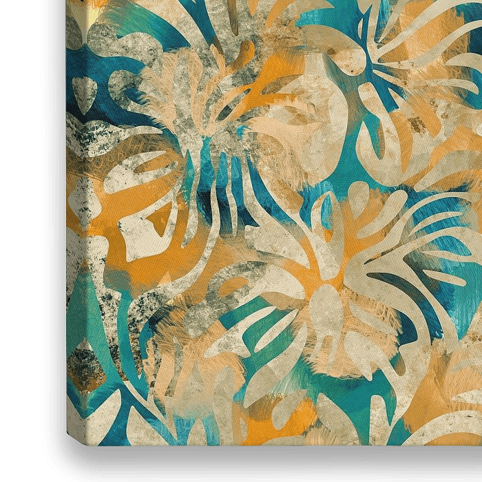Mix van abstracte blad vormen verwerkt in een verfstructuur.