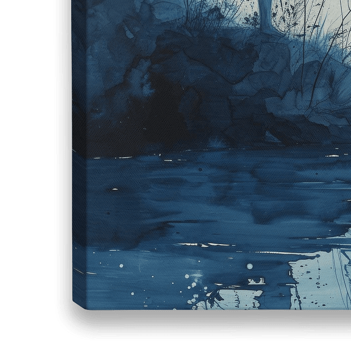 Botanisch portret in kobalt blauw. Digital art, geïnspireerd op cyanotypie en aquarel. Wabi-sabi, Japani, zen en nieuw landelijk. Kies zelf het formaat en materiaal bij dit werk.