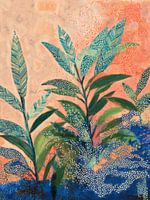 De warme koraaltinten en verzadigde bladeren voeren je naar een tropisch oord, waar alles net even losser en kleurrijker is. Perfect voor een beetje instant vakantievibe in huis.