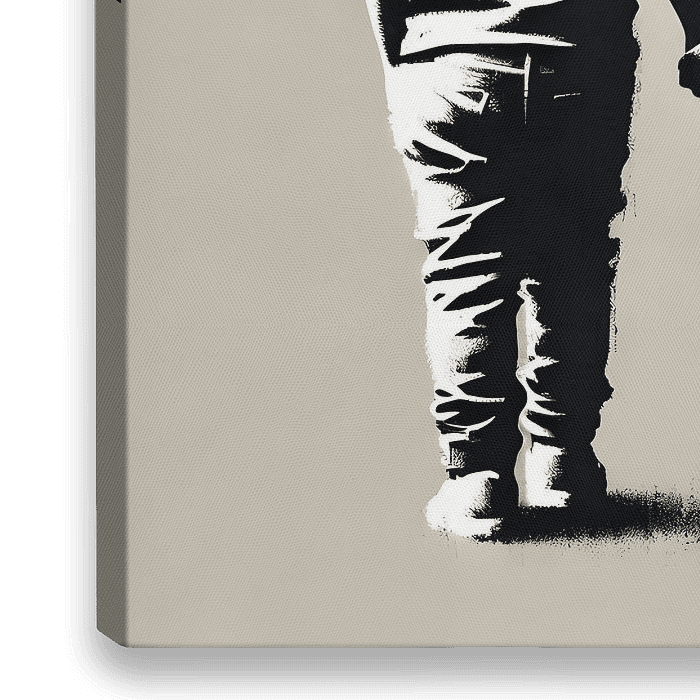 Vier de schoonheid van verbinding met dit werk geïnspireerd op Banksy! Een jongen en meisje die hand in hand lopen, uitgevoerd in zachte tinten, stralen eenvoud en onschuld uit. De combinatie van urban stijl en dromerige charme creëert een tijdloze en ontroerende sfeer. Perfect voor liefhebbers van moderne kunst met een diepere betekenis.