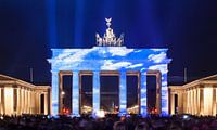 De Brandenburger Tor Berlijn in een speciaal licht ter gelegenheid van een lichtfestival