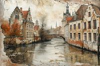Een sfeervol schilderij van de historische stad Brugge straalt rust en melancholie uit.