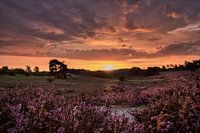 Brunssummerheide in bloei. Een nieuwe dag begint. De heide staat in bloei.