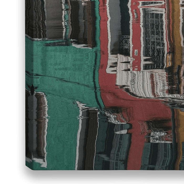 Weerspiegeling in een kanaal van typische huizen en winkels in Burano Venetië