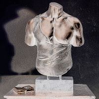 Buste van een mannentorso in koper en blauwtinten