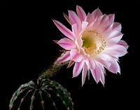 Een close-up foto van een cactus in bloei. Deze cactus bloeit slechts één keer per jaar voor maximaal 48 uur.