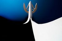 De telecommunicatietoren van Montjuïc in Barcelona, Spanje. Ontworpen door architect Santiago Calatrava. Gebouwd voor de Olympische Zomerspelen van 1992.