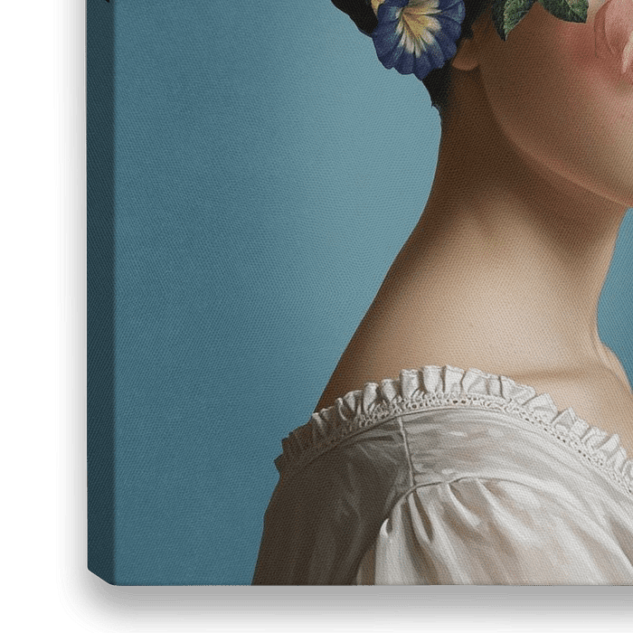 Dit is een collage van diverse afbeeldingen, waarvan de bloemen afkomstig zijn uit stillevens van oude meesters van lang geleden en de beeltenis van de vrouw door het moderne Artificial Intelligence is…