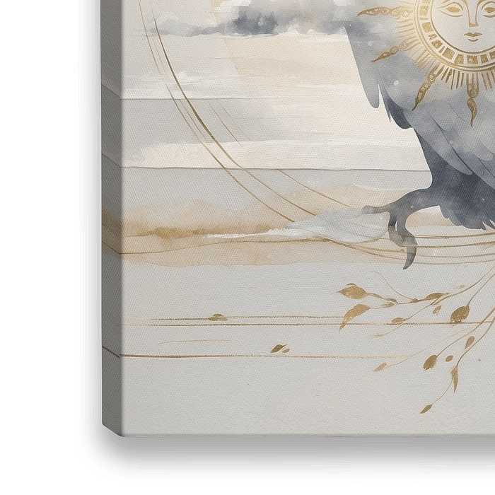 Celestial Sunheart of Huitzilopochtli past prachtig in serene, natuurlijke interieurs. Hang het in een lichte woonkamer of meditatieruimte waar het zonlicht het gouden hart zacht laat gloeien. Combineer met zandtinten, crèmekleurige stoffen en subtiel goud voor een sfeer van rust en spirituele verfijning.