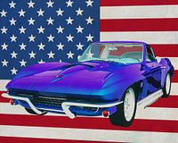 Koop dit Popart kunstwerk Chevrolet Corvette Stingray 427 1967 met vlag van de V.S. van Jan Keteleer op canvas, aluminium dibond, (ingelijste) fotoprint, behang en ArtFrame, op maat geprint in Fine-Art kwaliteit.