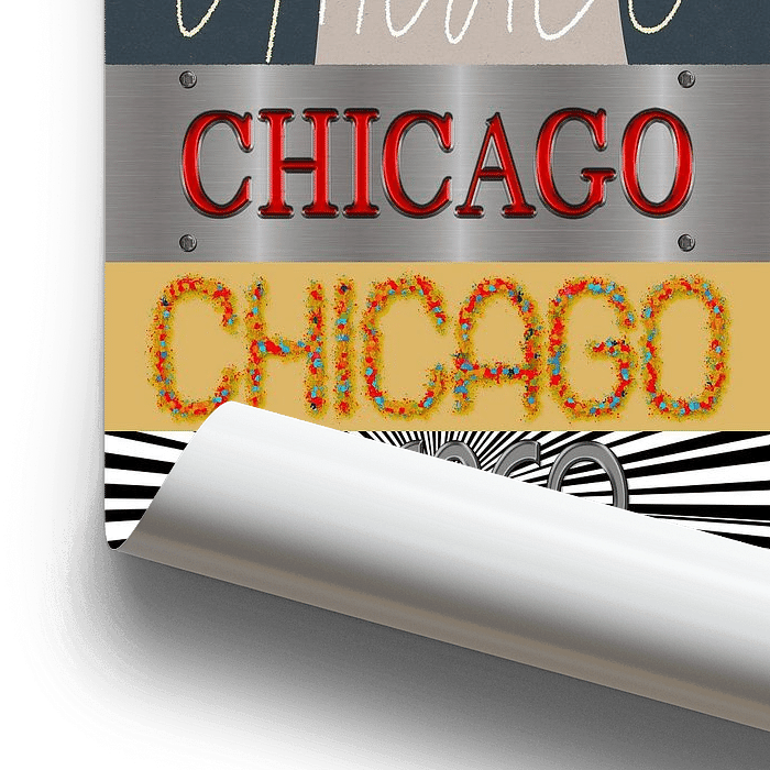 Grafiek met verschillende ontwerpen van de stadsnaam CHICAGO