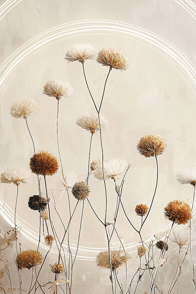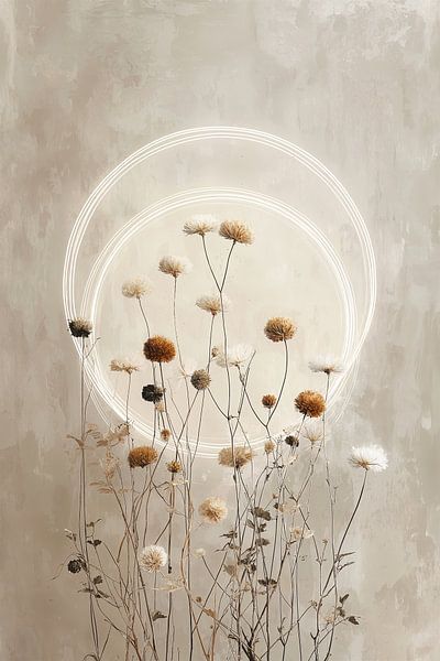 Een meditatie in vorm en licht: delicate zaadhoofden zweven binnen een gloed van neon, alsof gedachten zichtbaar worden gemaakt. Dit sublieme kunstwerk vangen de essentie van groei, vergankelijkheid en innerlijke schoonheid. De ethereale botanische vormen contrasteren met de moderne geometrie, wat een spirituele harmonie tussen natuur…