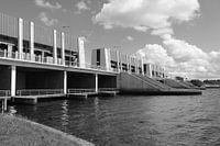 De R.J. Cleveringsluizen op de grens Friesland/Groningen, in Nederland. Bij laag water zorgen de uitwateringssluizen ervoor dat het water vanuit het Lauwersmeer wordt afgevoerd naar de Waddenzee.
