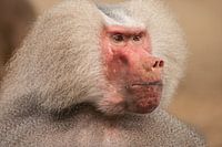Een dominant mannetjes Baviaan kijkt oplettend voor zich uit om te voorkomen dat een ander mannetje een van zijn vrouwtjes inpikt.