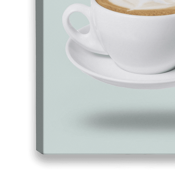 Modern werk in pastelkleur. Het kopje koffie lijkt te zweven.