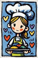 Details: vrouw, chefkok, groenten, schaal, hartjes, blauw,…