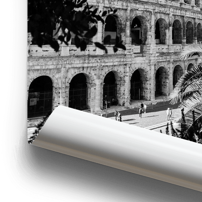 Een citytrip naar Rome, toch wel een van de bijzonderste steden van Europa. Geniet van deze beelden van het imposante Colosseum! Op deze foto is een zonnig doorkijkje naar het Colosseum te zien uitgevoerd in zwart-wit.