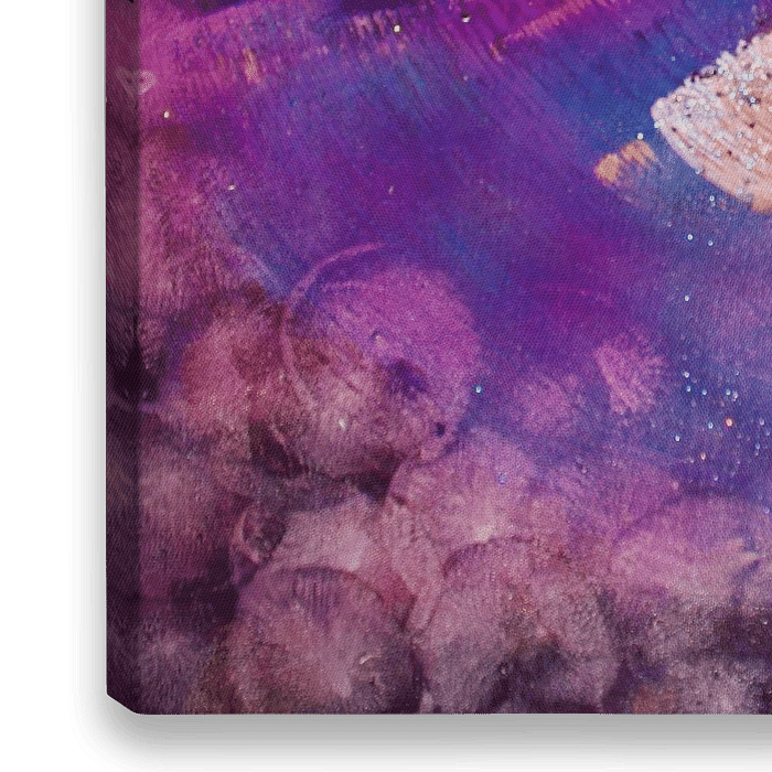 Dit schilderij is een ode aan de kwetsbare schoonheid van het leven. Met zachte en toch intense kleuren – paars, roze en indigo – brengt het een subtiele emotie over die raakt aan de vergankelijkheid van alles wat is. De tinten vloeien moeiteloos in elkaar over, als een dans tussen licht en schaduw, leven en verval.