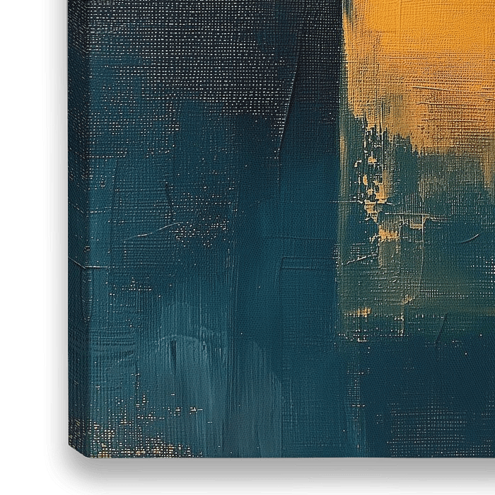 Een minimalistisch abstract kunstwerk met drie kleurblokken, met een zachte overgaan in warme gele tinten, wat een impressionistische stijl creëert. Het gestructureerde oppervlak voegt diepte toe aan de compositie, terwijl de algehele esthetiek kalmte en eenvoud uitstraalt.
