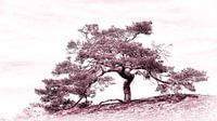 Conifeer op een duin in het Nationaal Park Elbtalaue aan de Elbe in Duitsland. Roodachtige tint.