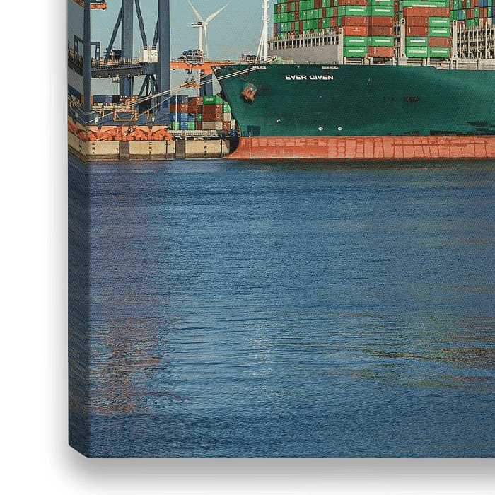 Koop de Rotterdam foto Containerschip Ever Given van Evergreen. van Jaap van den Berg als print op canvas, aluminium dibond, (ingelijste) fotoprint, behang en ArtFrame. Voor jou op maat geprint in Fine-Art kwaliteit.