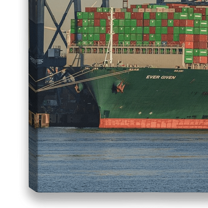 Koop de foto Containerschip Ever Given van Evergreen. van Jaap van den Berg als print op canvas, aluminium dibond, (ingelijste) fotoprint, behang en ArtFrame. Voor jou op maat geprint in Fine-Art kwaliteit.