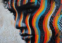 Details: portret, gezicht, kunst, modern, kleurrijk, abstract, canvas, dynamisch, expressief, creatief