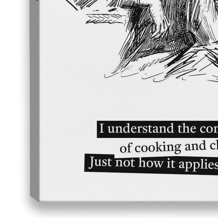 Vintage tekening voorzien van een uitspraak van een vrouw die absoluut geen huisvrouw is.