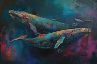 Cosmic Leviathans - abstract neon walvissen schilderij